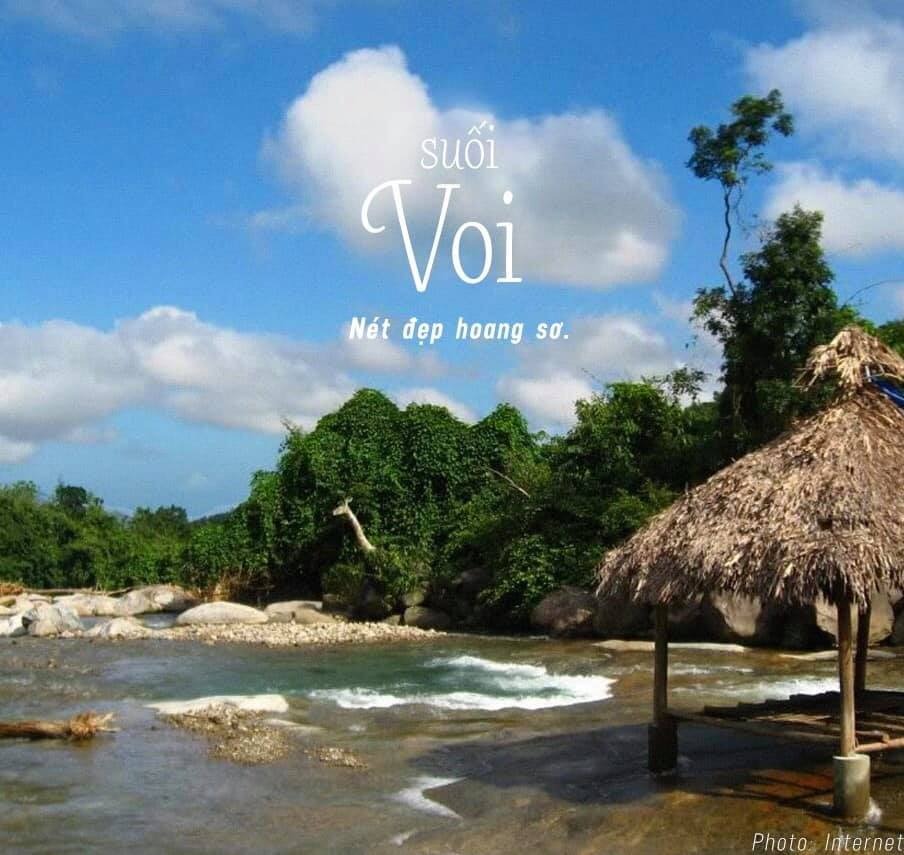 Suối được đặt tên là Suối Voi, vì tại đây có một tảng đá hình y hệt một con voi đang thả vòi uống nước dưới chân thác. Nơi đây còn có một hồ nước được đặt tên là Đầm Voi, đây là một hồ tắm thiên nhiên rộng khoảng 30 m², sâu trên 2 m, nằm giữa hai ngọn thác. Hồ nước mát lạnh trong xanh có thể nhìn thấy tận đáy.